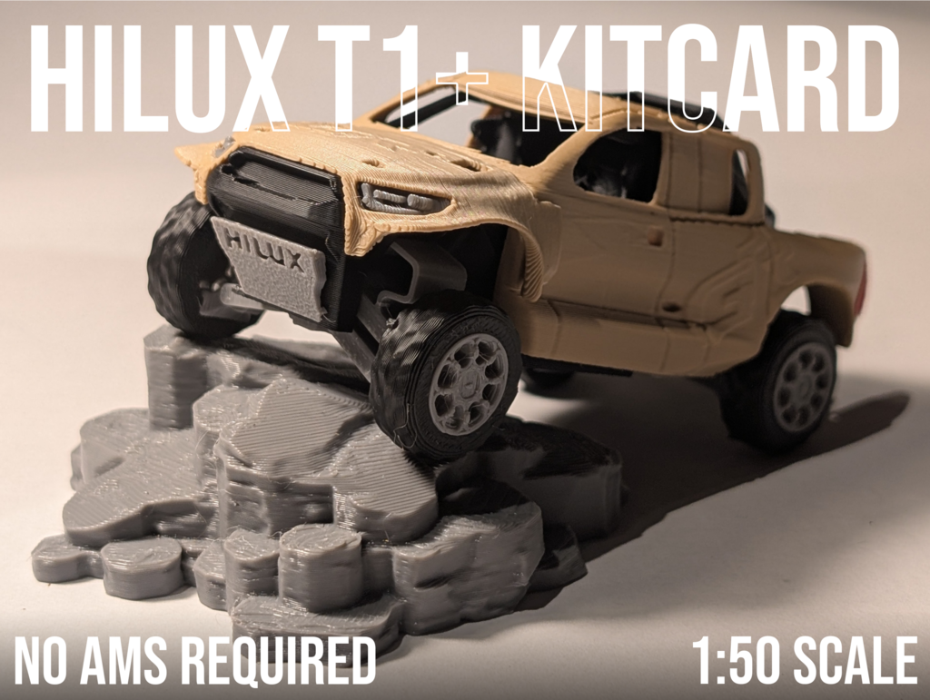Из набора собирается многоцветная модель Hilux T1+ в масштабе 1:50 с функциональной подвеской. Модель разделена на три сегмента + стоп-сигналы, которые можно распечатать отдельно разными цветами даже без многокомпонентной системы. После печати сегменты можно объединить в один лист картона; я рекомендую вставить стоп-сигналы в картон перед сборкой. Файлы включают кузов с тисненым текстом GR или просто кузов без рисунка, на ваш...